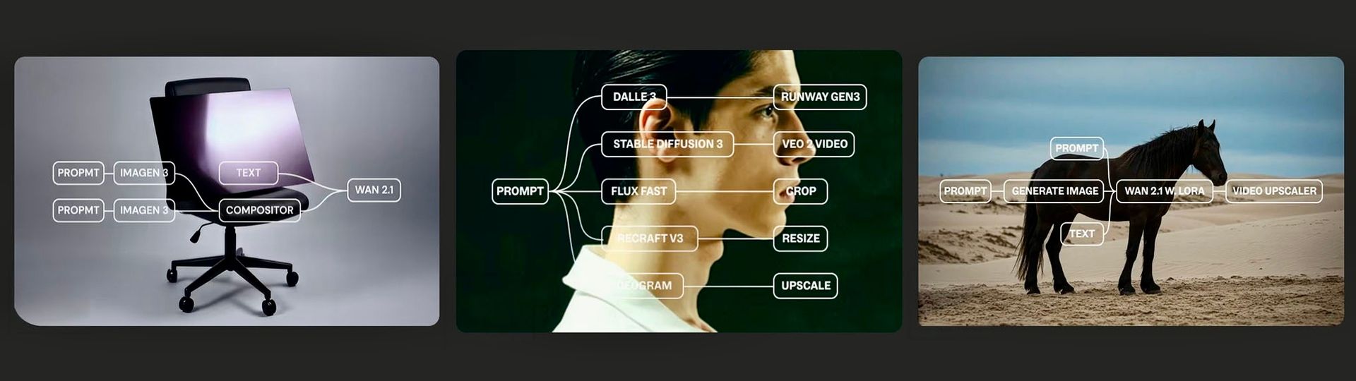WEAVY es una plataforma creativa profesional basada en nodos que unifica generación y edición de imagen, vídeo y 3D mediante modelos de IA integrados en un único entorno de trabajo. Permite combinar en un lienzo visual modelos como Flux Pro, Runway Gen-4, Kling, Luma o SD 3.5 con herramientas avanzadas de edición, incluyendo inpainting, outpainting, máscaras, capas, relighting, tipografía y extracción de profundidad, orientadas a construir flujos complejos sin cambiar de aplicación. Su propuesta se aleja de los generadores de IA básicos y se acerca a un entorno de producción en la nube similar a ComfyUI, pensado para profesionales y equipos que necesitan control, consistencia visual y trazabilidad en proyectos de marca. Con planes de suscripción orientados a uso individual y colaborativo, se posiciona como una solución práctica para agencias y equipos creativos que buscan escalar workflows de IA más allá de la experimentación puntual. YOUTUBE