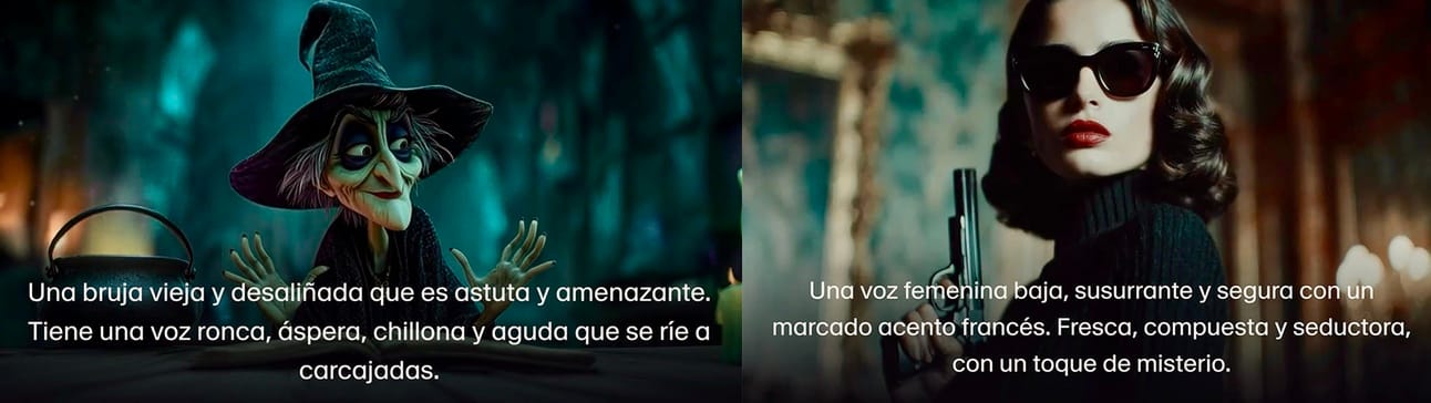 ESTOS Y OTROS EJEMPLOS LOS ENCONTRARÁS EN LA WEB DE ELEVENLABS