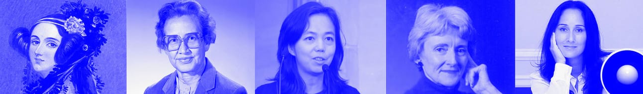 Pioneras. De izquierda a derecha: Ada Lovelace, Katherine Johnson, Fei-Fei Li, Mary Allen Wilkes y Cynthia Breazeal
