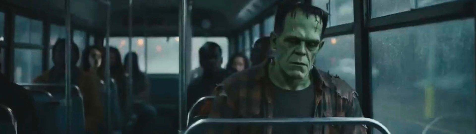 FRANKEISNTEIN CON MENSAJE (1′26″) Flujo de trabajo que comenta el artista Simon Meyer: “Siempre empiezo creando una base de sonido. Después de escribir la entrevista con Frankenstein, generé las partes individuales con Google DeepMind Veo3 a través de Higgsfield AI y krea.ai. Luego tomé la música de Artlist y edité ambos elementos para definir qué visuales necesitaba generar. A continuación, generé las tomas generales con Google DeepMind Nano Banana (la mayoría desde Freepik). Después, creé los primeros planos y planos de recurso con Nano Banana y Higgsfield AI Popcorn. Amplié las imágenes con Enhancor y Magnific AI. Una vez listos todos los visuales, animé todo principalmente con Kling AI y ByteDance Seedance. Para la voz en off de la entrevista, utilicé el cambiador de voz de ElevenLabs, ya que la original sonaba demasiado “Veo3”. Aun así, no estoy del todo satisfecho: una voz humana sonaría diez veces mejor.”
