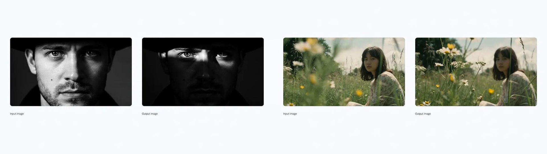 ◀️ Oscurece o ilumina una parte de tu imagen con controles de iluminación para lograr efectos dramáticos específicos. Prompt: Genera una imagen con un intenso efecto de claroscuro. El hombre debe conservar sus rasgos y expresión originales. Introduce una luz dura y direccional que parezca provenir de arriba y ligeramente desde la izquierda, proyectando sombras profundas y definidas sobre el rostro. Solo pequeñas franjas de luz deben iluminar los ojos y los pómulos; el resto de la cara debe quedar en sombra profunda. ▶️ Resalta los detalles de tu composición ajustando la profundidad de campo o el punto focal (por ejemplo, enfocando las flores). Prompt: Enfoca las flores. Image Credits: Google