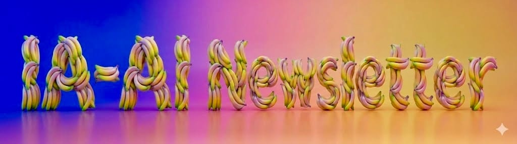 PROMPT UTILIZADO: “Elimina la palabra Pro y escribe con el mismo estilo de plátanos el texto “IA-AI Newsletter” pero ocupando el 90% de la anchura de la imagen y manteniendo el fondo de colores actual.” 🔼 Image Credit: Google