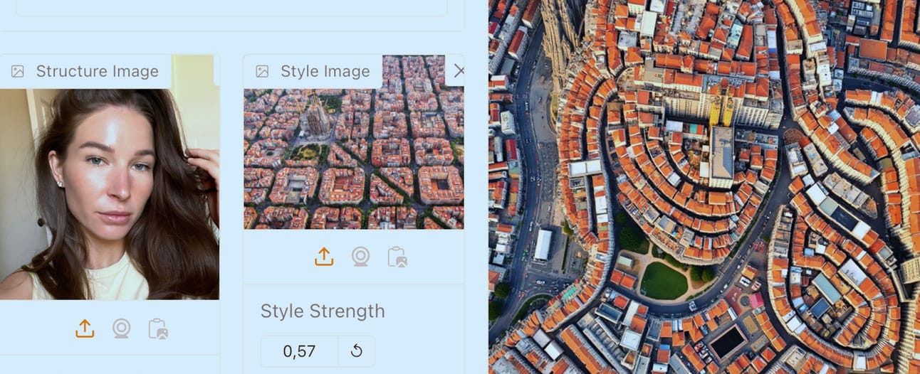 En Hugging Face, el space flux style shaping te permite crear visuales definiendo la estructura con una imagen y aplicando el estilo de otra.