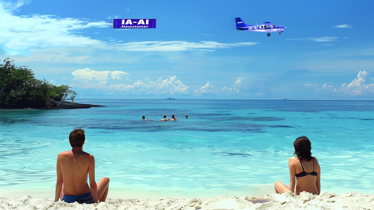 Sabes que estas de vacaciones cuando ves un avión así en la playa. Made with Midjourney